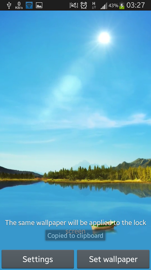 Lake SceneHD adalah aplikasi android Weather atau kabar cuaca terkini plus Live wallpaper cantik ditampilan homescreen perangkat android anda, dengan aplikasi ini anda bisa memprediksi keadaan cuaca di kota anda cukup hanya melihat tampilan layar perangkat android anda, dapat menyesuaikan diri antara siang dan malamnya. Tidak hanya itu anda juga dapat mengkustomisasi tampilan live wallpaper Lake SceneHD, seperti danau jenis perahu dll, adapun fitur-fitur yang ada di Lake SceneHD adalah sebagai berikut: