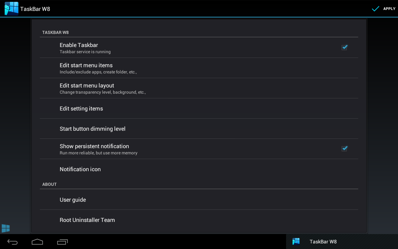 Tekan pada tombol "Start" untuk membuka taskbar. Gulir ke atas / bawah untuk meluncurkan (membuka) app. Jika Anda menambahkan folder, kontak, pengaturan, klik pada tema untuk mengeksekusi.